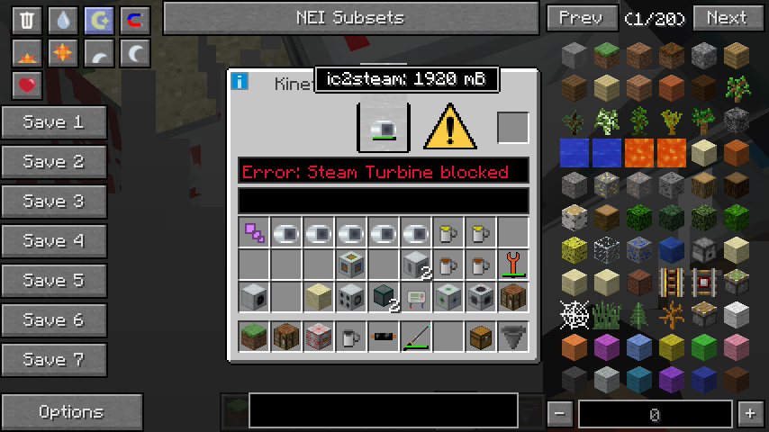 | Description | Updating IC2 builds seems to screw up steam generator set ups. I've had it so steam somehow got into my distilled water tank (FTW?) and the latest on is 1960mB of steam in a turbine, so much that the bar fell out above the GUI. It seems pretty random from updating IC2, is there anything you could do? | ||||