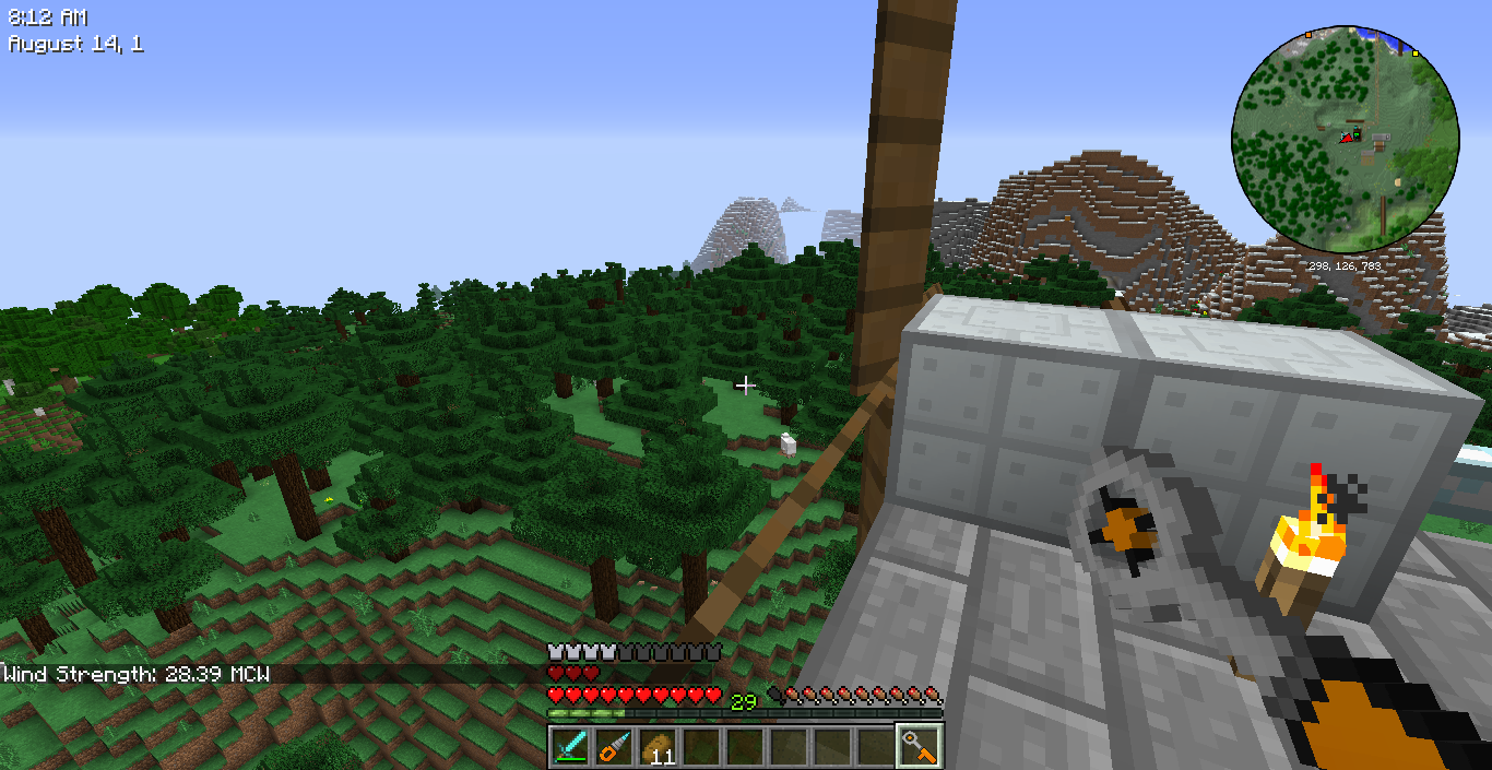 | Description | When attempting to use wooden rotors in the wind turbine, they would not run, despite having an acceptable wind value and nothing blocking the rotors. See these screenshots: http://imgur.com/a/wfVkT Text explanation: The wind value in the area seems to range between 25 and 31, all of which are values that are accepted by the Wind Turbine(According to the description of the item in the tooltip). There are no obstacles blocking them from rotating, but they still won't run. When looking in the turbine, it says the wind level is too low or there are obstacles, neither of which are true. | ||||