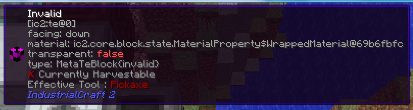 | Description | * by al_cool on 13/03/19 Single player f2768 industrialcraft-2-2.8.111-ex112 https://paste.dimdev.org/ehaxuneliw.mccrash Hi! The game have crash after a wrong manipulation. By mistake I've inverted connections between a Matter Fabricator and a Weighted Item Distributor. As soon as I've click the GUI's button "down" to allow to transfer items between these two block, the game have crashed. I guess I've asked my WID to pull items from a MF by mistake. Upon game's reload WID was replaced by a weird block who was missing its texture. Name was something about... stored data. Unfortunately, I've lost it, I've destroyed it. Since I was unable to use a wrench to dismantle that block, or what looks like having replaced my WID, hitting the block with my pickaxe destroyed it without creating a block drop. | ||||