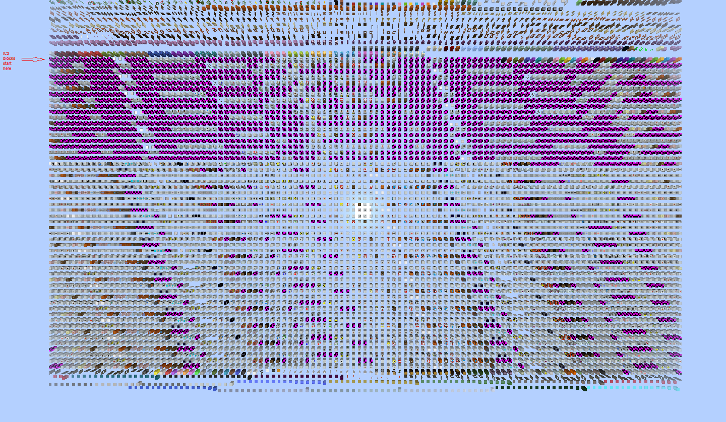| Description | 1) Their GUI cannot be opened (If they have one) 2) Some blocks are displayed as purple-black texture 3) The particles of breaking them is also purple-black 4) They always have a hitbox of a full block even if they shouldn't be 5) Middle-clicking ic2:te won't give the player the corresponding item | ||||
