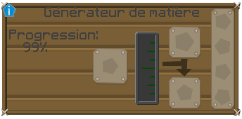 | Steps To Reproduce | After placed an UU-matter generator to an electric source, this one start the progress of uu-matter, the % up until to 99% and stop there... | ||||