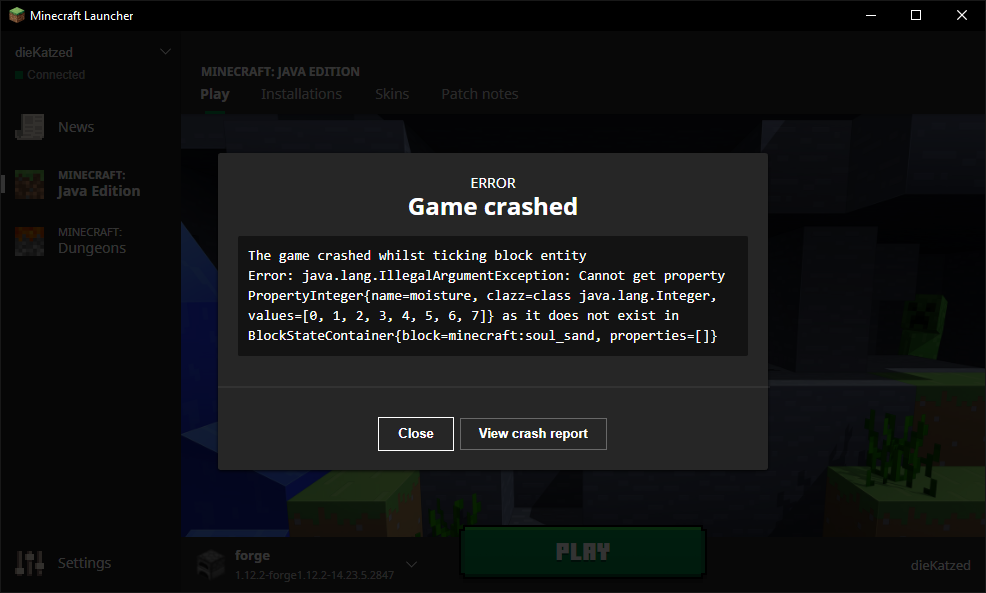 java.lang.IllegalArgumentException: Cannot get property PropertyInteger{name=moisture, clazz=class java.lang.Integer, values=[0, 1, 2, 3, 4, 5, 6, 7]} as it does not exist in BlockStateContainer{block=minecraft:soul_sand, properties=[]}