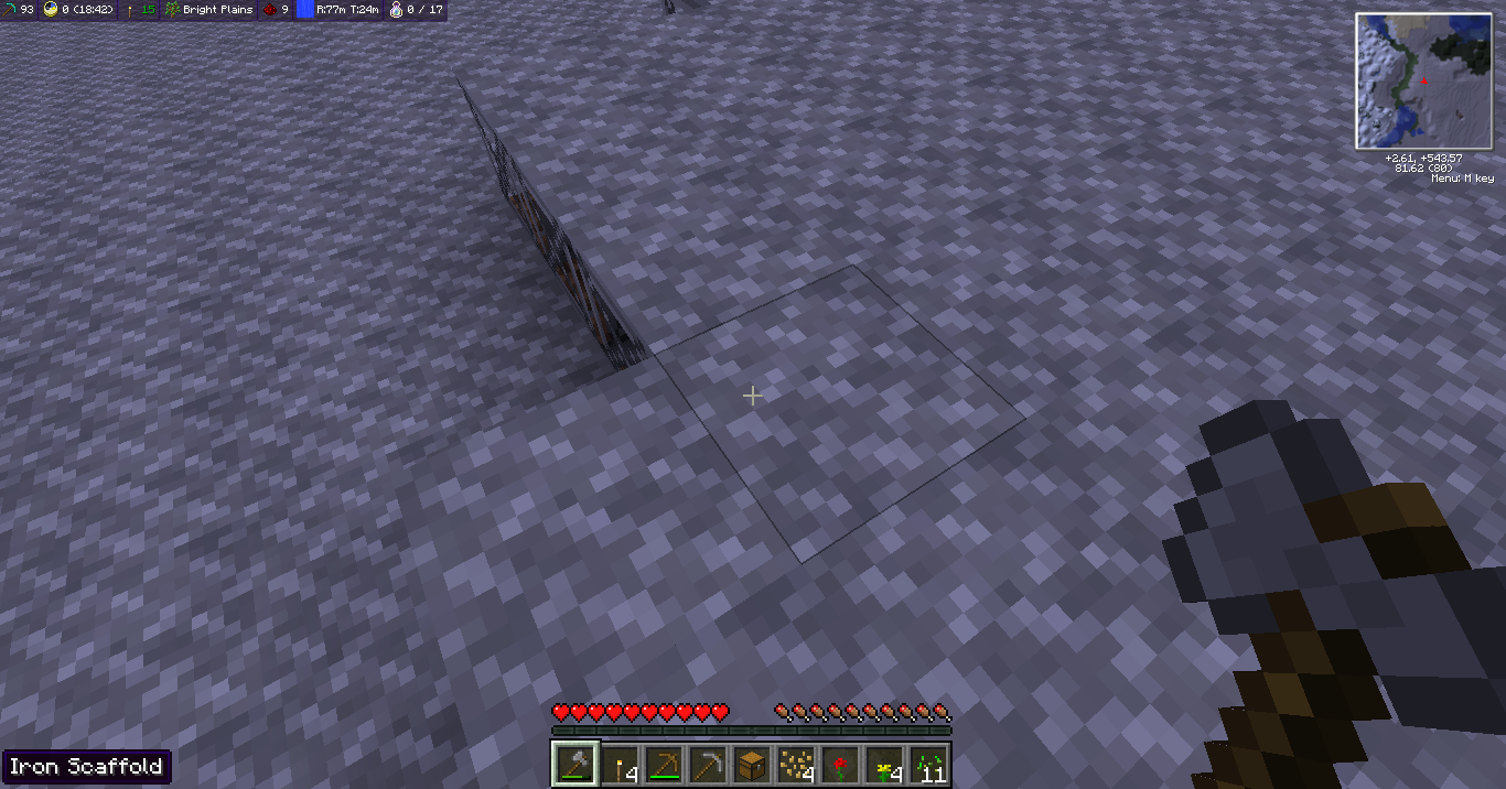Using a different configuration today. Using Magiclauncher. I have most of the same mods installed, but changed a few to the Universal Electricity since I have been wanting to check them out. Today, instead of batboxes, I have iron scaffolds. Now is that weird or what? This is using the same seed which is "sad" without the "". |