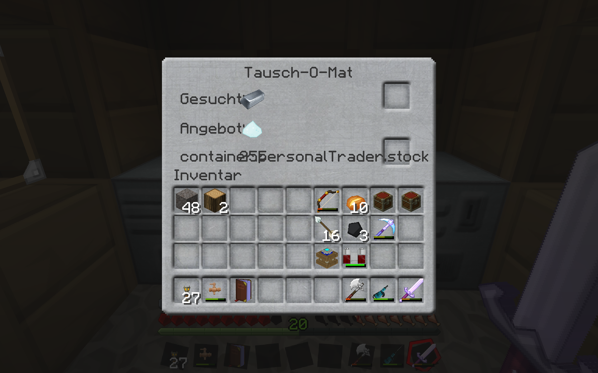 | Description | I have a bug(bow) in Trade o Mat found! With me becomes below(at the bottom) "container.personalTrader.stock" and thereby one cannot read the contents! | ||||