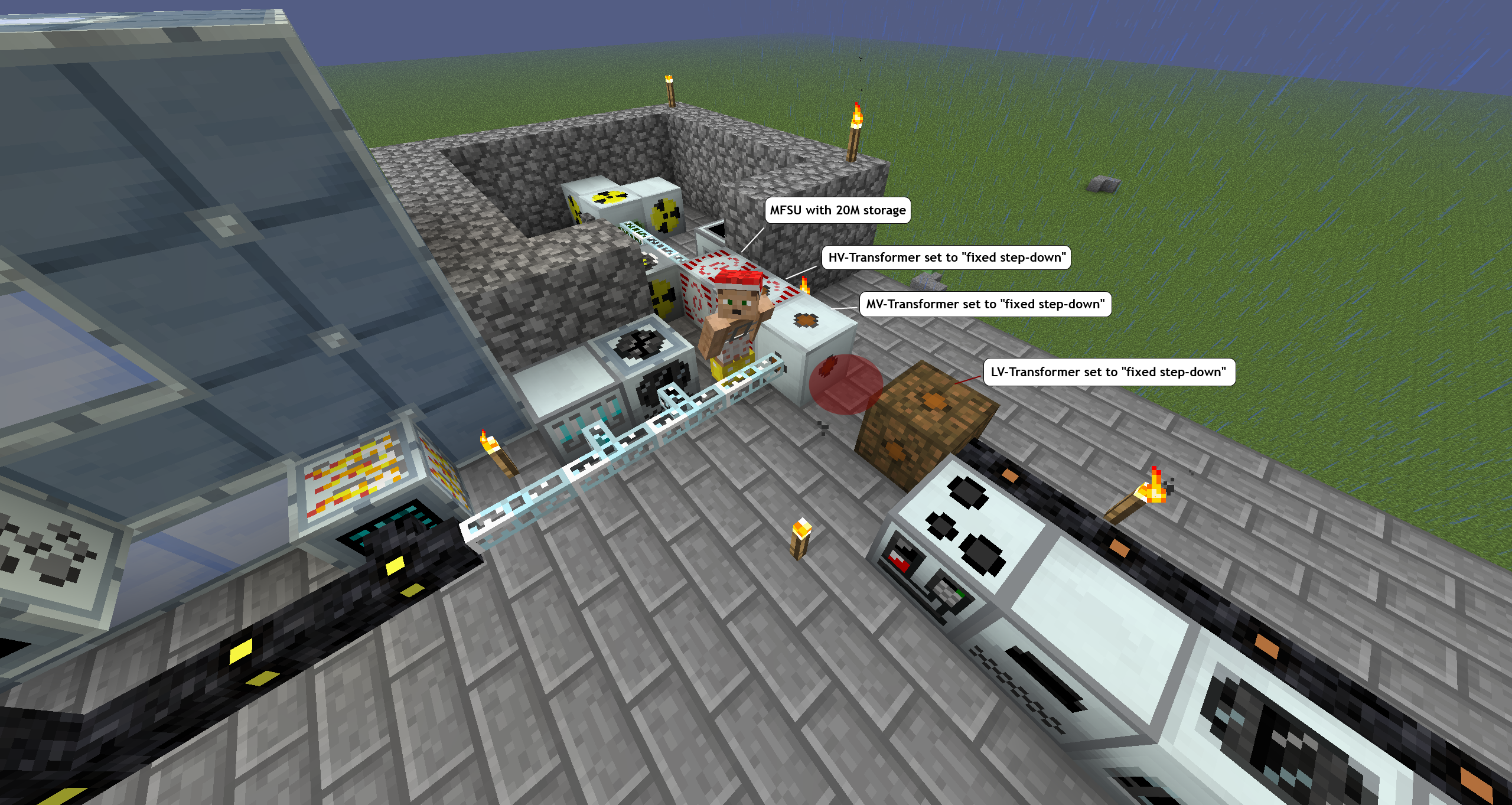 | Description | Please take a look at the setup shown in the screenshot. Basically it's a MFSU connected to HV- and MV-Transformers. From the MV-Transforer a cable goes to an Industrial Electrolyzer which needs constant 128 EU/t. The Ind. Electrolyzer works fine until I connect MV-Transformer and LV-Transformer (red circle). After that it doesn't get constant 128 EU/t anymore, even if I disconnect the LV-Transformer from any other machine (so there's no power draw from any machine). | ||||