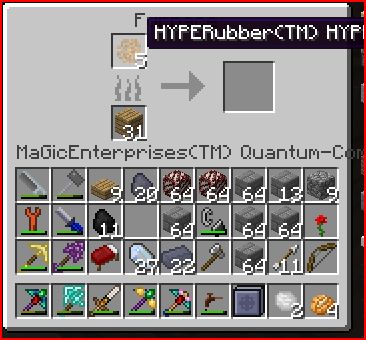 | Description | Using the latest experimental version, and the ones before it, sticky resin can not be cooked in a furnace. This major problem has "chopped down the tech tree", as Machines are now the only way to make rubber - but those machines that make rubber, require rubber in their components. | ||||